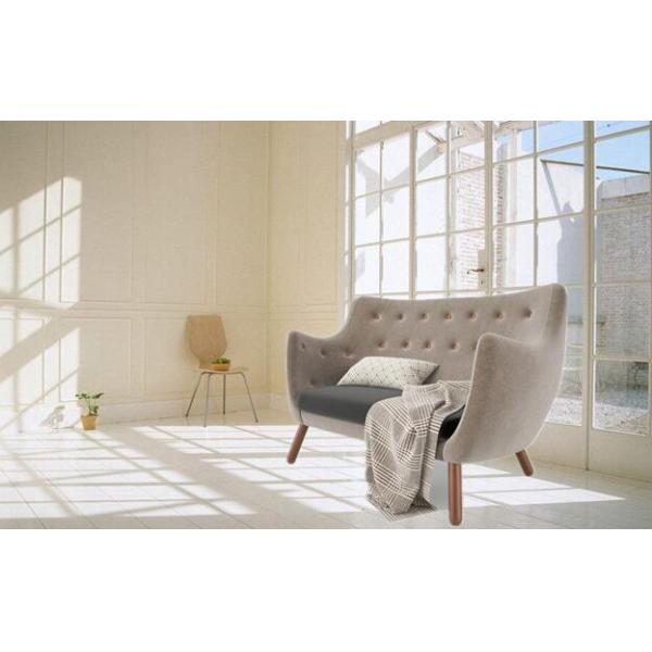 Material:fiberglass+cashmere/fabric+solid wood legs